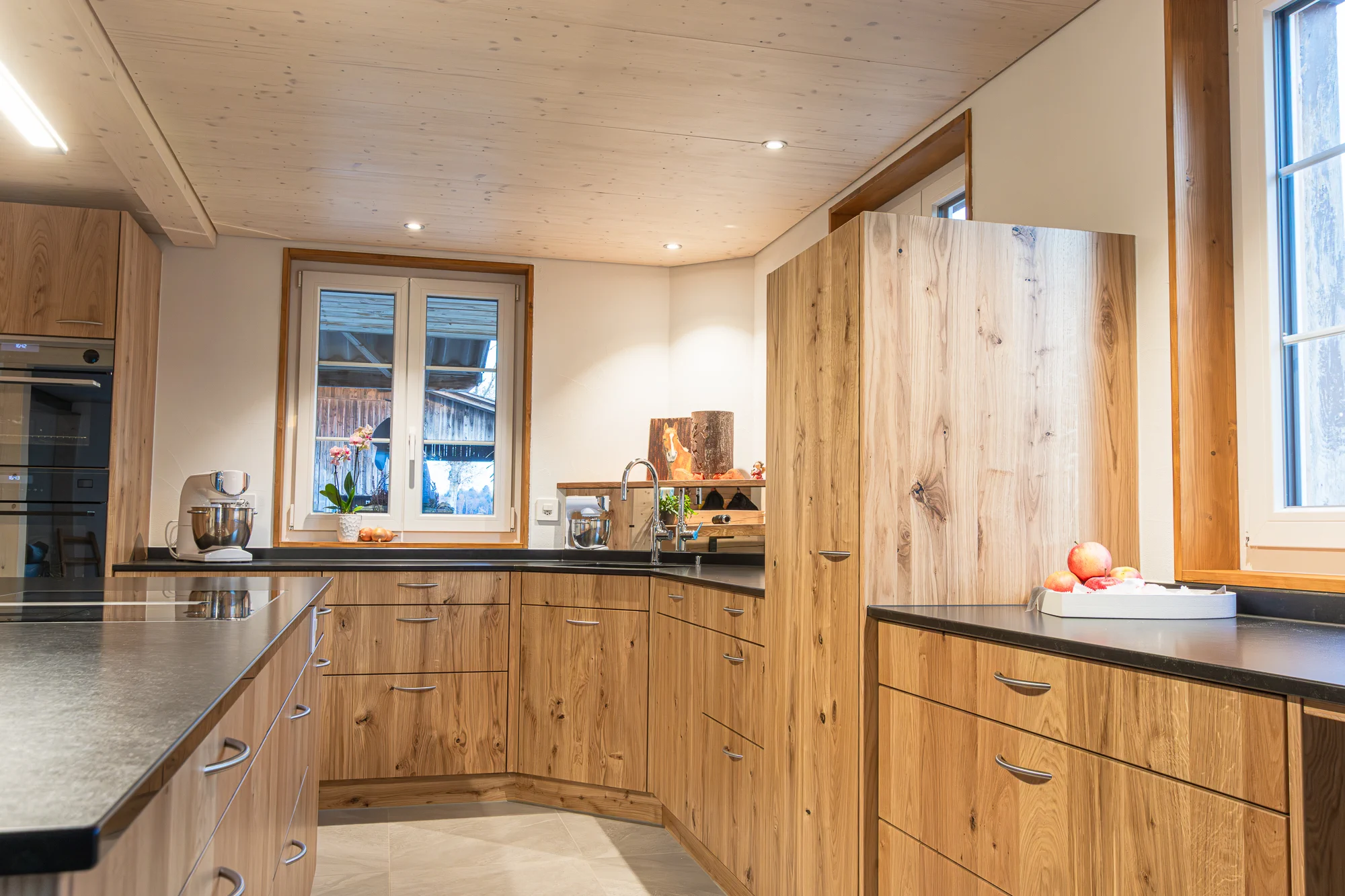 Das Resultat ist eine Küche, die Natur, Funktionalität und zeitlose Eleganz harmonisch vereint – perfekt für Menschen, die Wert auf Qualität und echtes Handwerk legen.